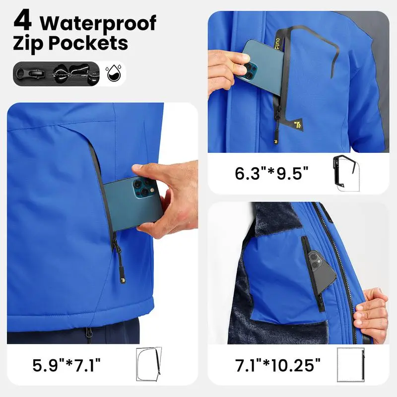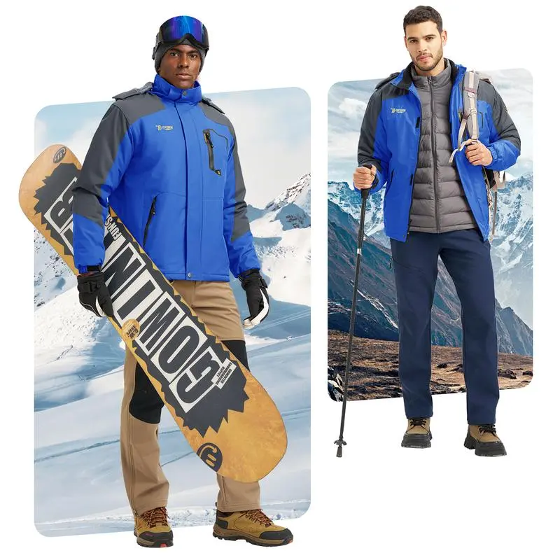 Jacket uses a special coating with good waterproof and Water Resistant function, all exterior pockets are designed with waterproof structure. Suitable for winter snowy weather.Features: Breathability, Water Resistant, Windproof, Fleece Lining, Detachable HoodOccasion:Mountain climbing, Camping, skiing, hiking, running, cycling, traveling, walking the dog, fishing, hunting, taking a walk and other indoor & outdoor sports.